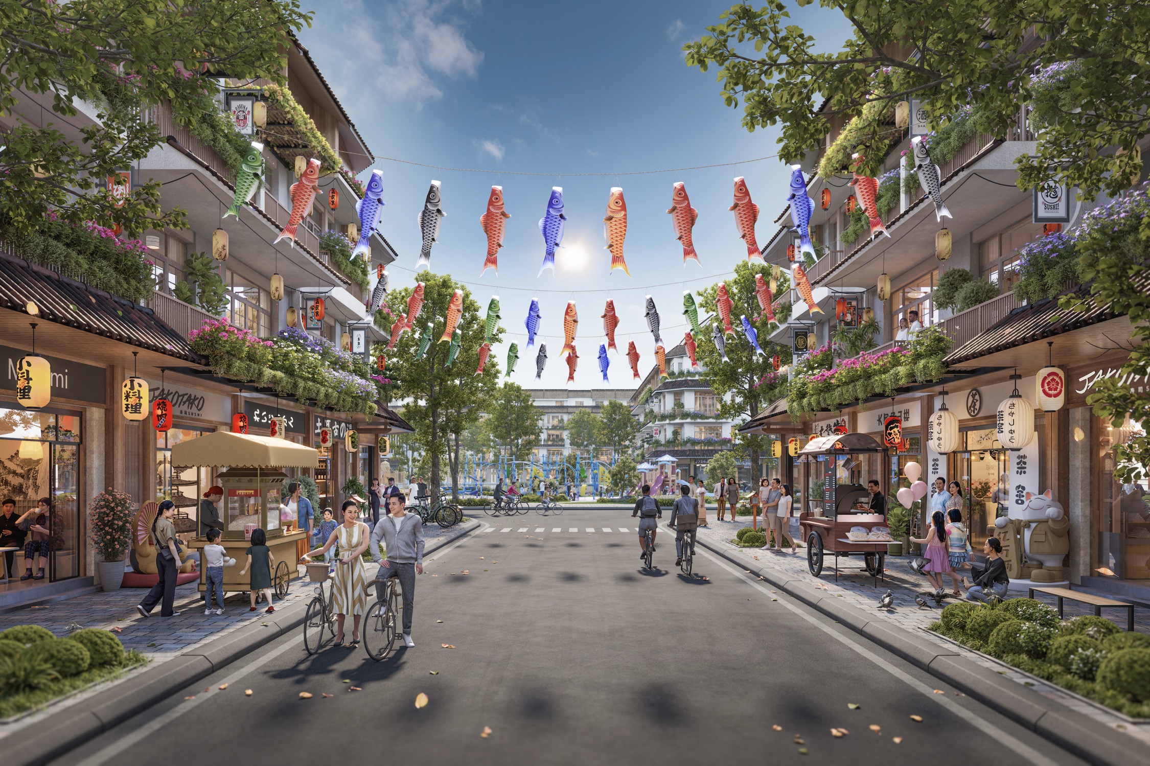 Lấy cảm hứng từ bí quyêt cho cuộc sống trường thọ của người Nhật, công viên trung tâm Ikigai là sự hài hòa giữa cảnh quan xanh mát, mặt nước yên bình và kiến trúc tối giản đương đại. Nơi đây còn là nhịp cầu kết nối cộng đồng, nơi mỗi người tìm thấy niềm vui giản dị trong từng khoảnh khắc.