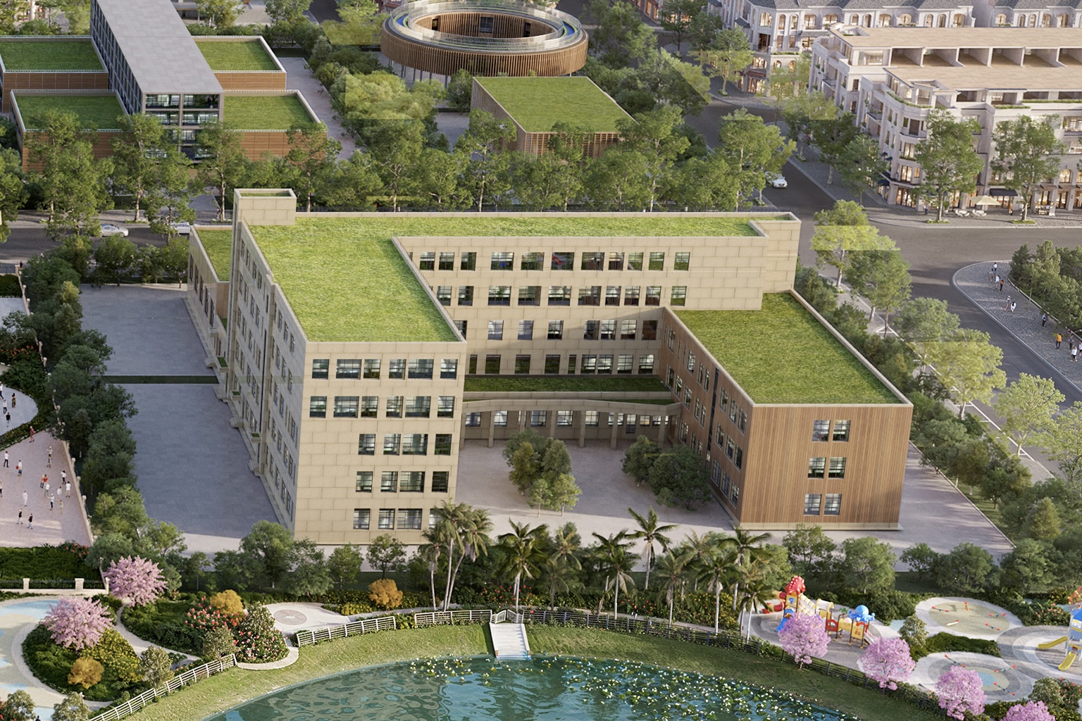 Hơn 3.2 héc ta diện tích mặt nước và hồ sinh thái mang đến một không gian khoáng đạt, một dòng chảy vượng khí trong lành đến từng ngôi nhà.